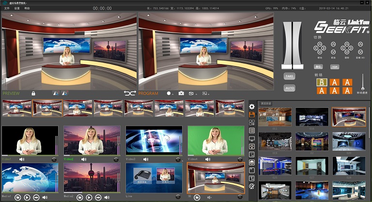 臨云 LinkYun 真三維虛擬演播室系統結構簡單、高度集成,一套產品可以獨立完成傳統演播室中的節目信號切換、字幕疊加、節目播出、信號錄制、虛擬布景、流媒體發布等功能。